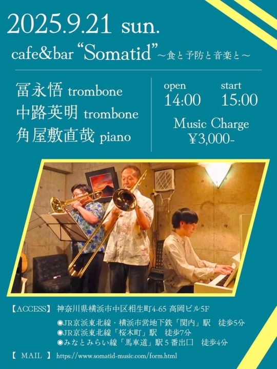 中路英明(tb)、井上祐一(p)、古西忠哲(b)ライブ&セッション
