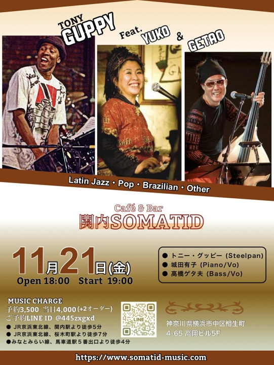 西村健司(tb)、舘野公一(g)、長谷川慧人(b)