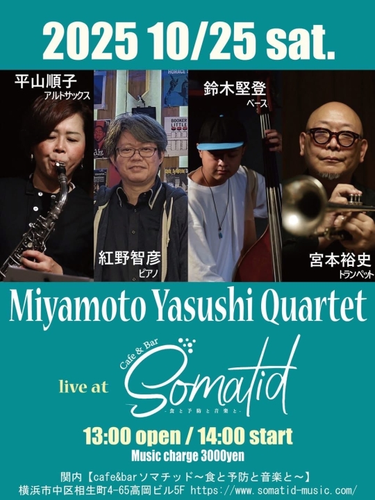 岩嵜香織(tp)、中路英明(tb)、井上祐一(pf)、古西忠哲(b)