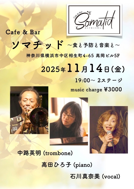 山田翔一(tb)、鳴海望美(vo)、木村ゆう(p)